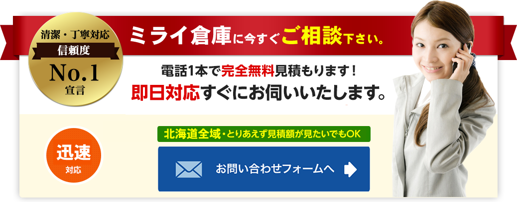 不要品の物量によって料金が異なってしまいます。ミライ倉庫では、安心安全なサービスをご提供しております。お客様の状況に合わせたプランをご提案させていただきますので、お気軽にお問い合わせください。